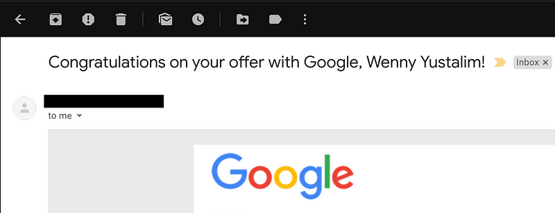 Seeing my name side-by-side with the word "Google" and "offer" is.. unbelievable